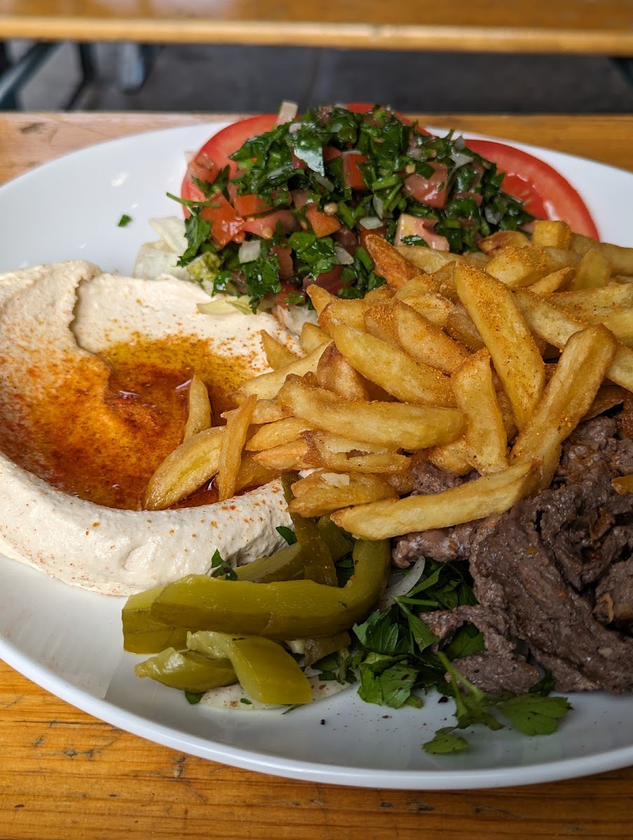 The shawarma plate was really good. Portion sizes were huge. Service was very friendly. Highly recommend this place
